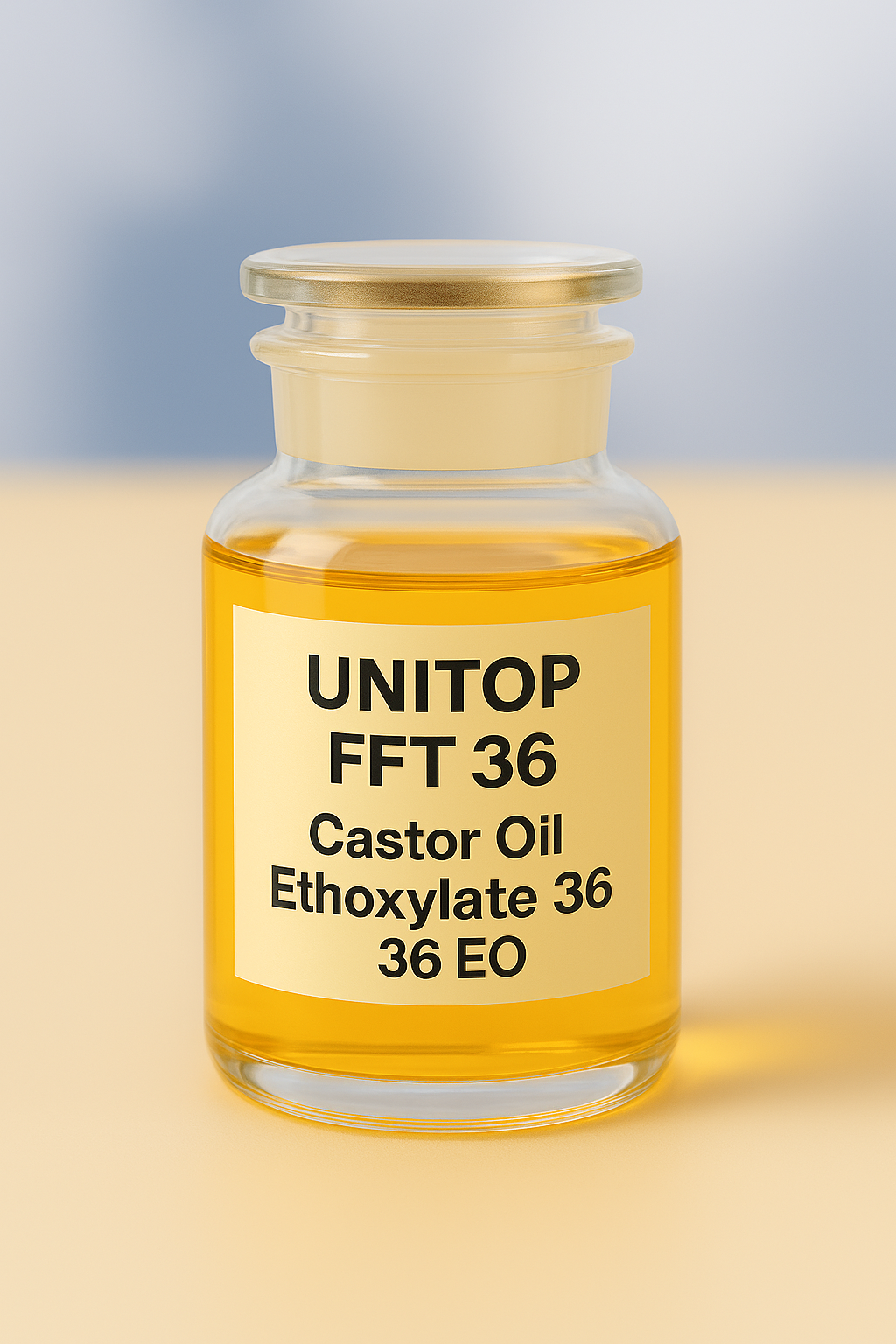 Unitop FFT-36 is a castor oil ethoxylate used as lubricating and emulsifying agent in pigments working applications and in a variety of oil field applications