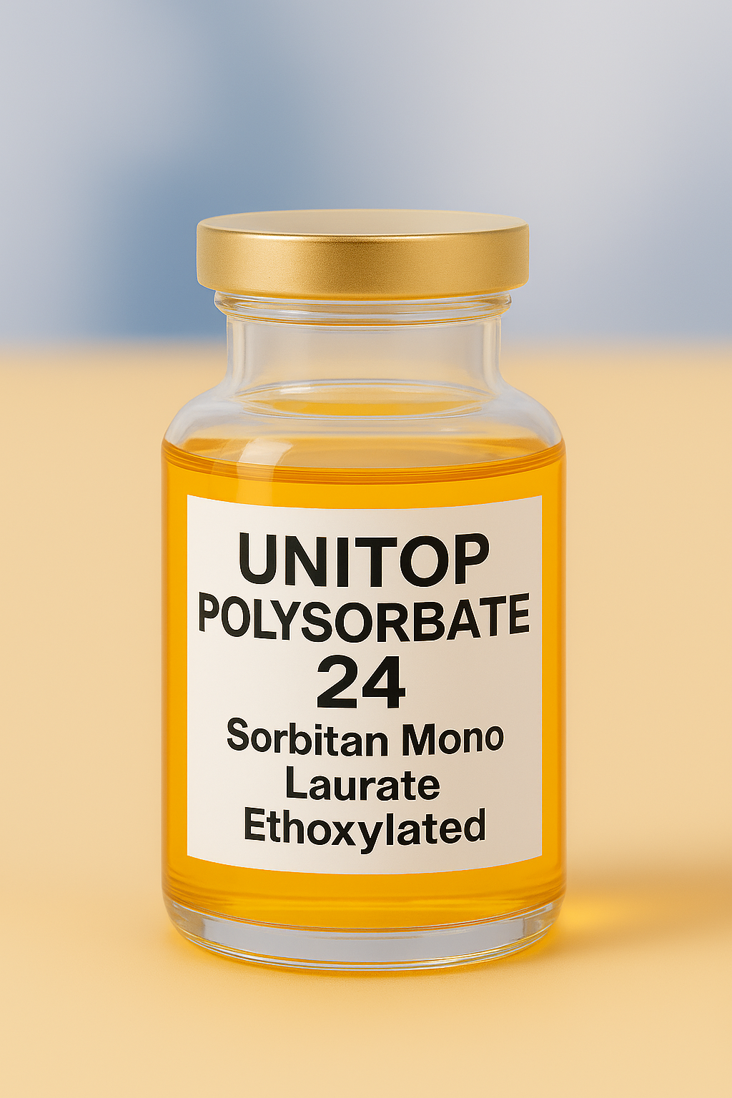 UNITOP-POLYSORBATE-24 is nonionic surfactants derived from sorbitan esters. It is soluble or dispersible in water but differ widely in organic and oil solubility. Used as oil in water emulsifiers in pharmaceuticals, cosmetics, cleaning compounds, etc